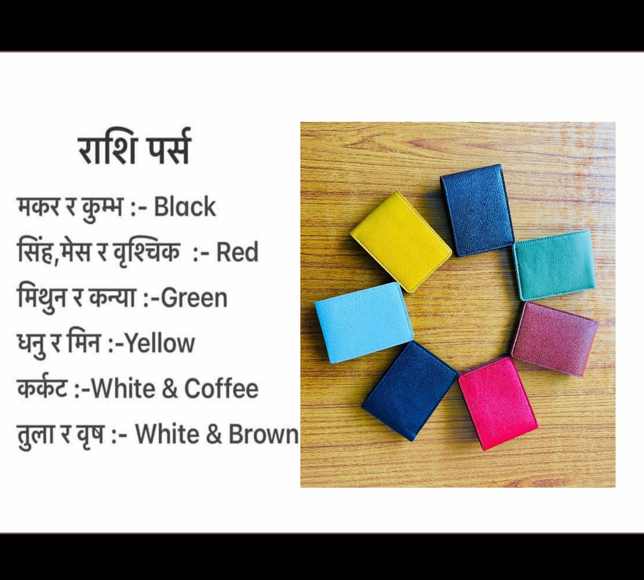 के तपाईले बोकेको पर्स च्यातिएको छ ? आटेको काम बनिरहेको छैन ? अब राशि अनुशार शुभ रङ्गको पर्स बोक्नुहोस् ।